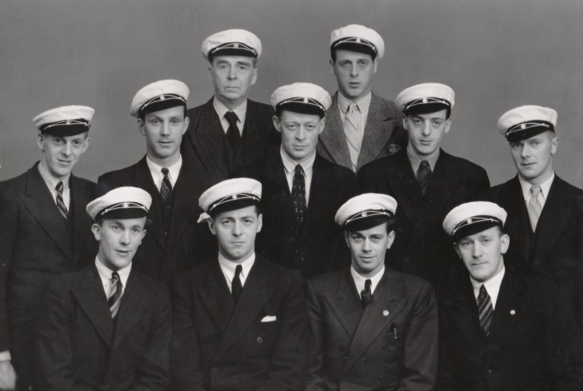 Nøkken 27. april 1946 i helt nye sangerluer (Foto: Schröder) Første rekke fra v.: Erling Kilås, Hans Tiller, Bjørn Hagerup, Birger Jakobsen. Andre rekke; Gunnar Tiller, Arnfinn Johansen, Johan Tiller, Aksel Lønnum, Ulf Tiller, Odd Tiller, Arild Wigtil.